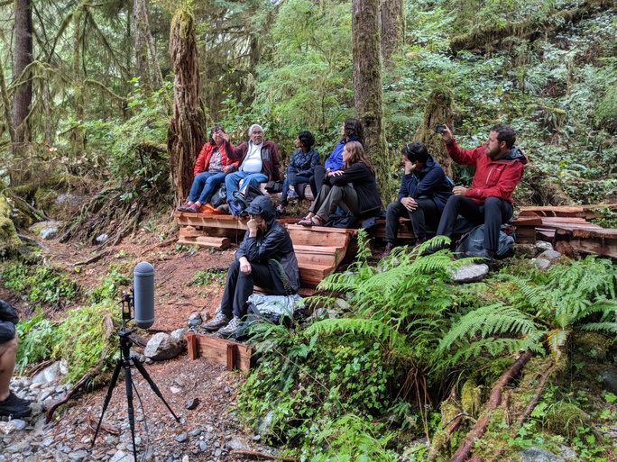 Forest Breath: A Portrait in Progress invited Supernatural artists Mike McLean, Kelly Richardson, Carol Sawyer, and Leila Sujir to further the conversation surrounding the exhibition on topics of contested territories, activism, and ecology on August 11. The group traveled to the southern Walbran Valley, the traditional territory of the Pacheedaht Nation. While part of the Walbran Valley was protected in the early 1990s in what is now known as the Carmanah Walbran Provincial Park, the south Walbran remains unprotected from logging. Facilitated by Supernatural curator Haema Sivanesan, the conversation also included Pacheedaht elder Bill Jones; Peter Cressey, Jessie Demers, and Erika Heyrman from the Friends of Carmanah Walbran; and Torrance Coste and Emily Hoffpauir from the Wilderness Committee.