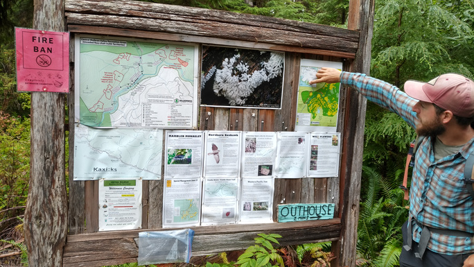 Torrance Coste of the Wilderness Committee explaining the trails in the south Walbran | Image courtesy of Haema Sivanesan