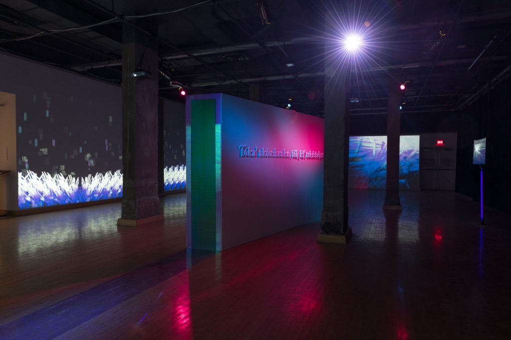 On a similar note, Leila Sujir’s Forest Breath highlights nature as a space of spiritual connection and renewal that needs protection. She uses stereoscopic 3D video to show a section of dense woodland on Canada’s West Coast that is under threat of deforestation. The ethereal imagery encourages viewers to reflect on old-growth forests in relationship to cultural history, personal health, and mortality.