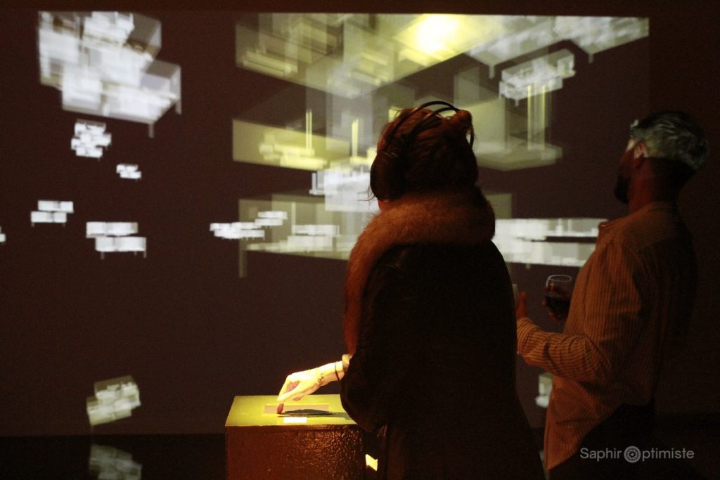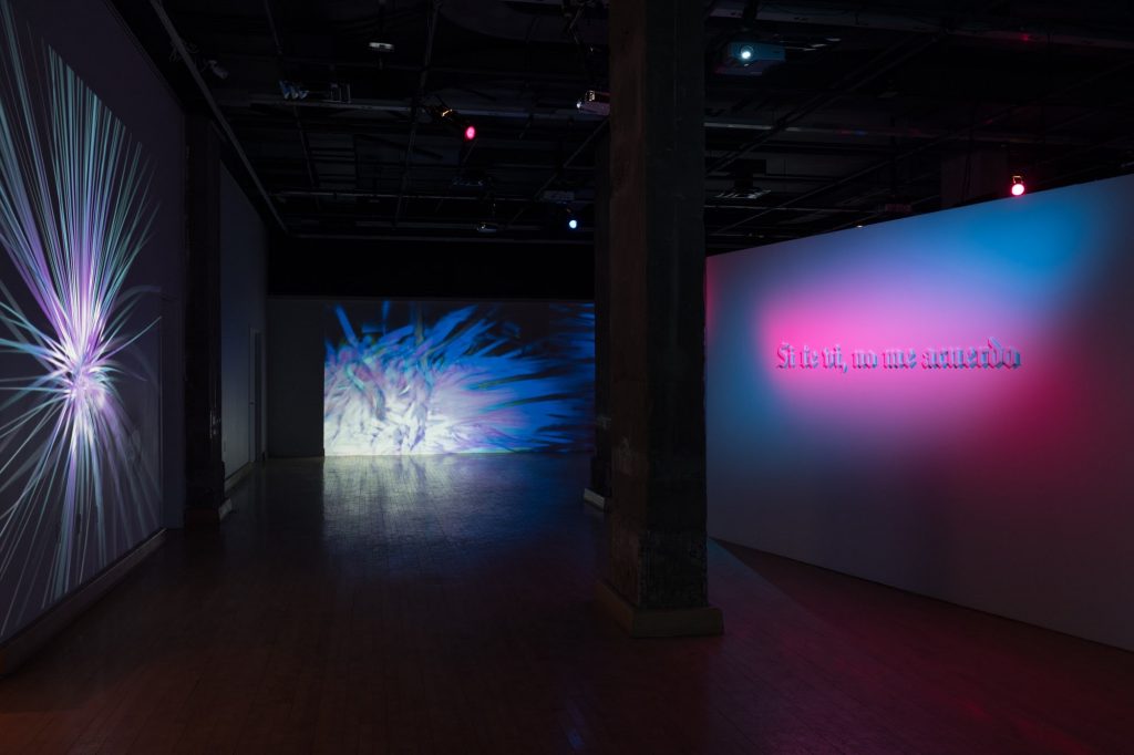 The Novels of Elsgüer (Episode 5); If I saw you, I don’t remember is an immersive audiovisual installation and performance piece that translates the movements of an unseen body into visual data in the form of hairlike filament animations, intermittent reflections, and flickering shadows. As a sensorial experience, this work asks how different individuals – visible or not- have the potential to create new spaces, raising questions on perception of visibility, inclusion and exclusion. This is the fifth episode in a series of transdisciplinary installations co-created by Colombian-Canadian artists Santiago Tavera and Laura Acosta since 2015.